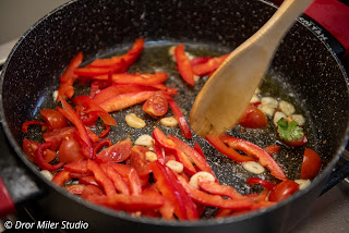מכינים משחת פפריקה - בכוס גדולה, שתים וחצי כפות גדושות פפריקה מרוקאית מתוקה וכפית שטוחה של חריפה. כפית שטוחה של כורכום. מוסיפים שמן זית (אפשר גם קנולה) שיכסה את הפפריקה ומערבבים מדי פעם (קצת יותר מרבע כוס משחה)